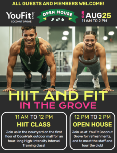 Join YouFit in the CocoWalk courtyard for a HIIT class on August 25th at 11am, then check out their open house!